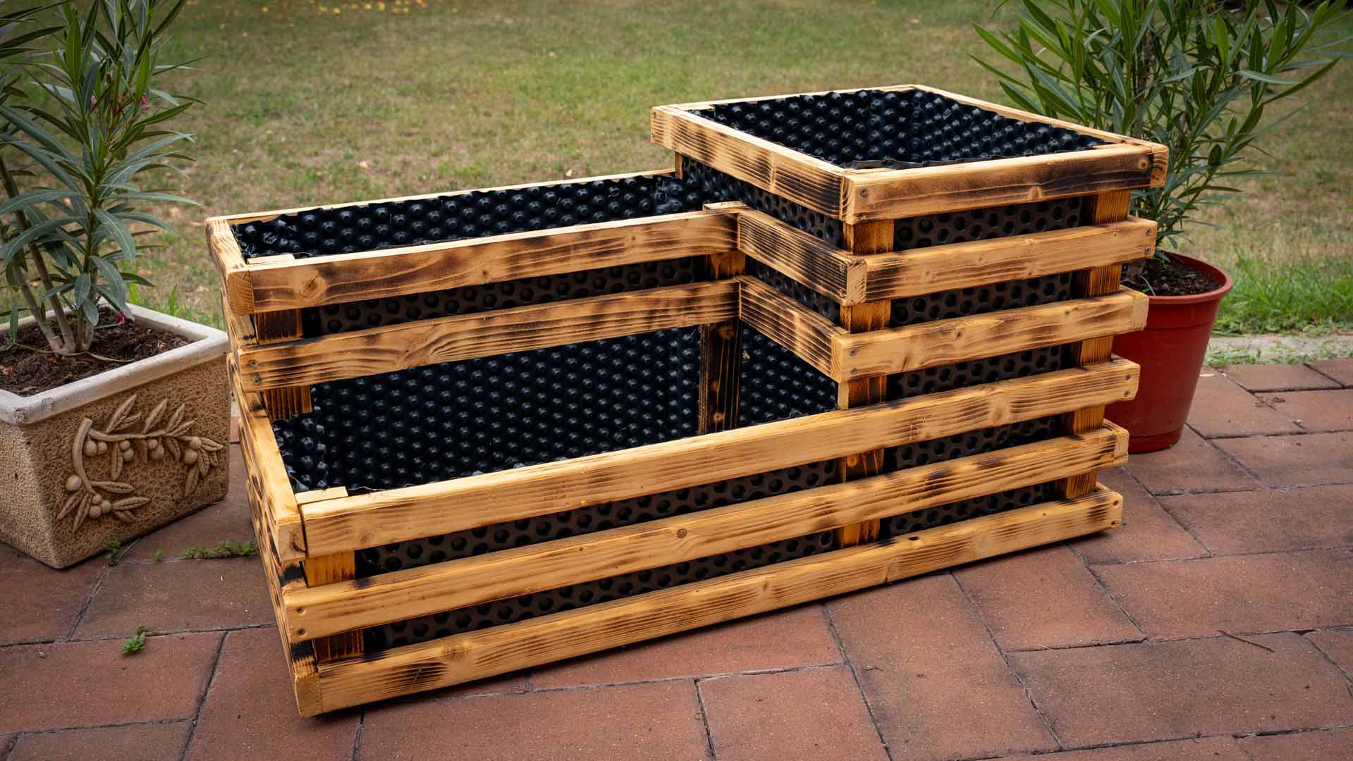 A Rustico Trio háromszintes magaságyás nemcsak praktikus, hanem látványos része is lehet a kertednek. A három különböző szint segít abban, hogy a növényeket átláthatóan, kényelmesen tudd gondozni, miközben a helyet is optimálisan használod ki. Különösen ideális zöldségek, fűszernövények vagy virágok ültetéséhez. Segít a talaj védelmében és a gyomok visszaszorításában.